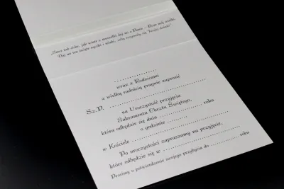 Wymiary zaproszeń: 14 cm x 14 cm.