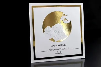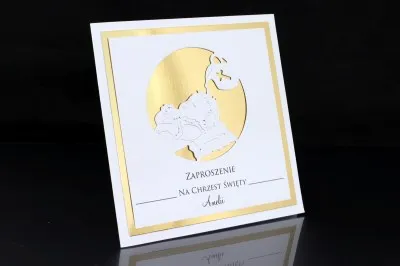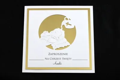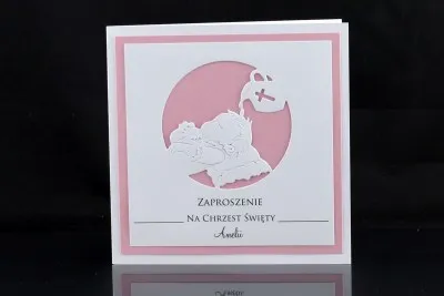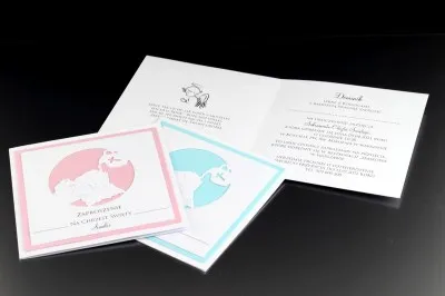 Cena obejmuje Zaproszenie na Chrzest, kopertę oraz personalizację treści zaproszenia (uzupełnienie treści) bez listy gości. Personalizacja listy gości płatna dodatkowo 0.50 zł/szt.