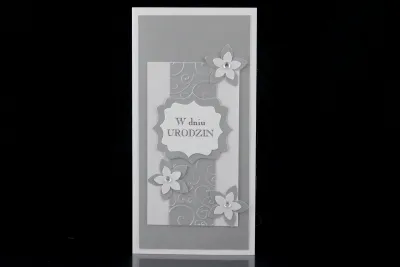Kartki okolicznościowe urodzinowe w formacie DL. Rozmiar kartki to 10,5cm x 21cm.
