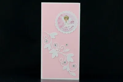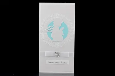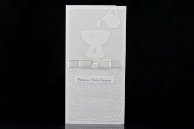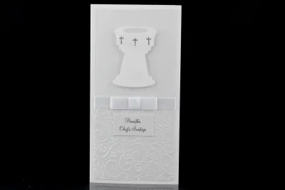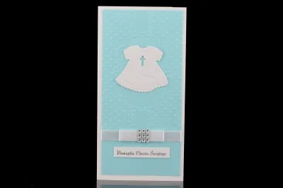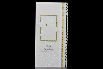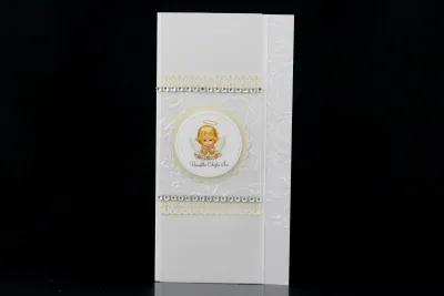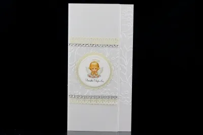 Kartki okolicznościowe z okazji Chrztu Świętego w formacie DL. Rozmiar kartki to 10,5cm x 21cm.