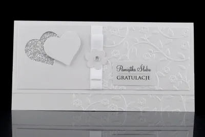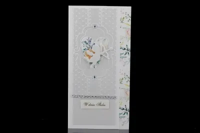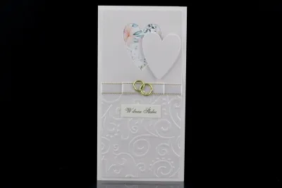 Kartki okolicznościowe Ślubne w formacie DL. Rozmiar kartki to 10,5cm x 21cm.