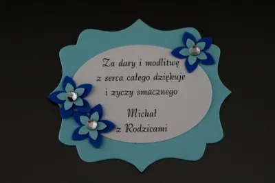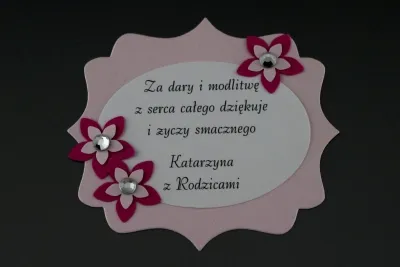 Gustowna etykieta na ciasto komunijne, która składa się z 2 wartw papieru. Etykieta przyozdobiona delikatnymi kwiatuszkami.