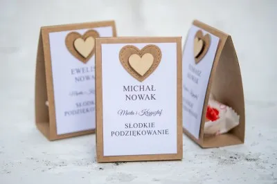 Gościom, którzy przybyli na Wasze wesele, będzie bardzo miło gdy przywita ich słodkie podziękowanie w formie stojącego pudełka z cukierkiem. Takie podziękowanie może również służyć jako winietka.