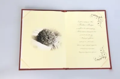 Przepiękne Podziękowanie dla Rodziców w kolorze białym, które będzie rewelacyjnym prezentem od Pary Młodej dla swoich rodziców. Podziękowanie to jest pionowe o rozmiarze A4 z okienkiem o wymiarach: szer. 7cm i wys. 10cm.