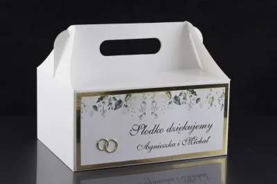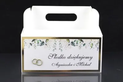 Pudełko przyozdobione jest podziękowaniami z motywemI HS.