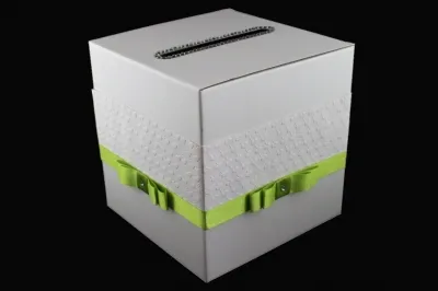 Pudełko na koperty o wymiarach 24 cm x 24 cm x 24 cm. Pudełko wykonane z wysokiej jakości papieru matalizowanego.