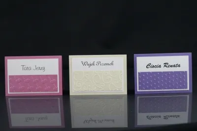 Możliwość wyboru koloru papieru koloru papieru, koloru wstążki, tłoczenia oraz czcionki. Możliwa jest także niewielka zmiana samego wyglądu winietki.