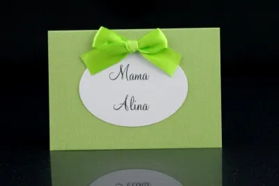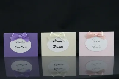 Możliwość wyboru koloru koloru papieru, koloru wstążki, oraz czcionki. Możliwa jest także niewielka zmiana samego wyglądu winietki.