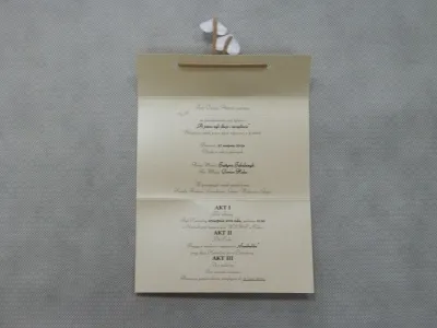 W środku wydrukowany jest tekst zaproszenia - możecie go Państwo wybrać spośród umieszczonych na naszej stronie tekstów lub też zaproponować swój.