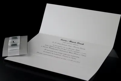 W środku wydrukowany jest tekst zaproszenia - możecie go Państwo wybrać spośród umieszczonych na naszej stronie tekstów lub też zaproponować swój.