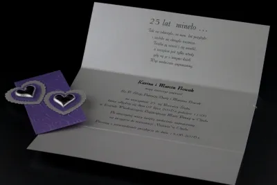 W środku wydrukowany jest tekst zaproszenia - możecie go Państwo wybrać spośród umieszczonych na naszej stronie tekstów lub też zaproponować swój.
