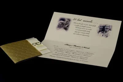 W środku wydrukowany jest tekst zaproszenia - możecie go Państwo wybrać spośród umieszczonych na naszej stronie tekstów lub też zaproponować swój.