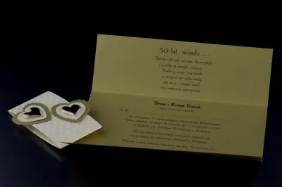 W środku wydrukowany jest tekst zaproszenia - możecie go Państwo wybrać spośród umieszczonych na naszej stronie tekstów lub też zaproponować swój.