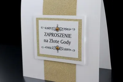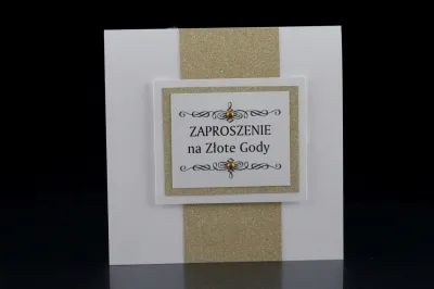 Proste i eleganckie zaproszenie ślubne ręcznie robione w formie kwadratu o wymiarach 14x14 cm. Zaproszenie ozdobione wykonane z białego metalizowanego papieru ozdobione złotym świecącym papierem i złotymi perłami.